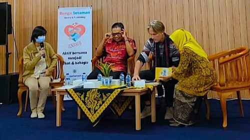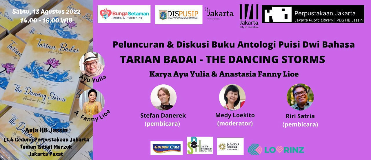 Jakarta-Net26.id Bertempat di Aula HB Jassin lantai 4 Gedung Perpustakaan Jakarta, Taman Ismail Marzuki (TIM), Jakarta Pusat, Sabtu, 13/8/2022, tim Bunga Setaman (BS) meluncurkan satu produk karya buku terbaru dari Ayu Yulia dan Anastasia Fanny Lioe. Buku kumpulan puisi (antologi) dwibahasa tersebut, Tarian Badai (The Dancing Storms), mendapat apresiasi pakar budaya Indonesia dari Swedia, Hans Stefan Danerek.